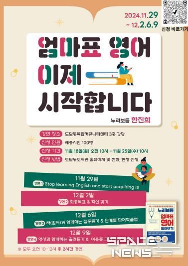 스페이스뉴스 스페이스뉴스 기자 | 세종시립도서관 도담동도서관이 높아진 영어교육 수요에 부응하기 위해 ‘엄마표 영어, 이제 시작합니다’를 주제로 강연을 연다.