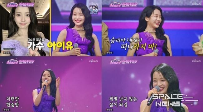 이어 김소연은 진성의 '가지마'를 선곡했다. 그는 "제가 사실 여기서 승률 1위"라며 "승률 유지해야 돼서 텐션 쭉 이어서 진성 선배님의 '가지마'를 준비했다. 승리를 '가지마'로 만들겠다"고 각오를 다졌다.
