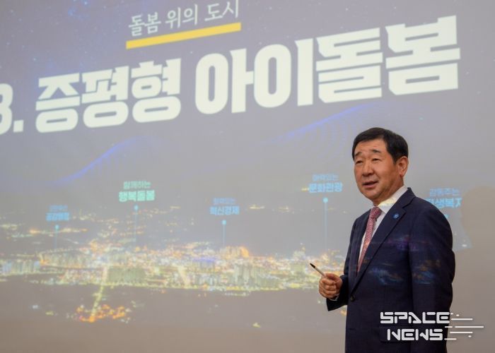 스페이스뉴스 스페이스뉴스 기자 | 이재영 증평군수가 5일 로얄호텔서울(서울 중구)에서 열린 농산어촌 소멸 위기 극복 정책토론회에서 ‘돌봄 위의 도시 증평’을 주제로 증평군의 지역소멸 및 저출산 극복 사례를 발표했다.
