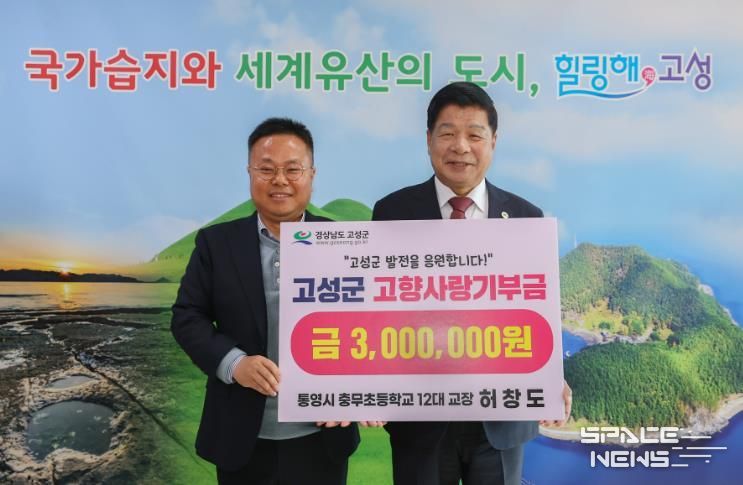 스페이스뉴스 스페이스뉴스 기자 | 경남 고성군은 5일, 대가면이 고향인 허창도 통영시 충무초등학교 12대 교장이 고향사랑기부금 300만 원을 기탁했다고 밝혔다.