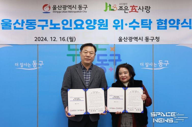 스페이스뉴스 스페이스뉴스 기자 | 울산 동구는 12월 16일 오후 4시 30분 구청장실에서 사단법인 조은효사랑(대표 김미자)과 울산동구노인요양원 운영 관리 위수탁 계약을 체결했다.