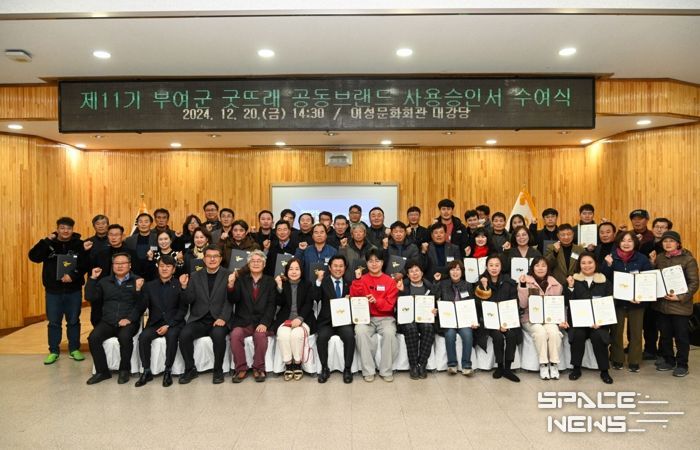 스페이스뉴스 스페이스뉴스 기자 | 부여군은 제11기 부여군 굿뜨래 공동브랜드 사용승인서 수여식을 개최해 최종 선정된 경영체 60개소에 승인서를 교부하고 브랜드 교육을 했다고 23일 밝혔다.