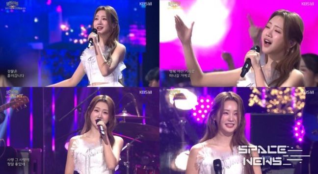 홍지윤은 22일 방송된 KBS 1TV ‘열린음악회’에 출연해 ‘제3한강교’와 ‘정말 좋았네’ 무대를 선보였다.