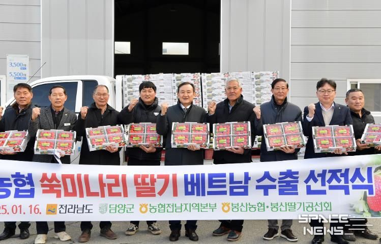 담양군은 지난 16일 봉산농협 산지유통센터에서 첫 선적식을 열고 딸기 256kg을 베트남으로 수출했다고 밝혔다.
