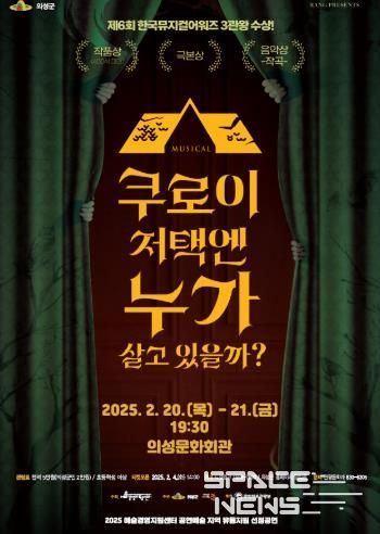 스페이스뉴스 스페이스뉴스 기자 | 의성군은 지난 2022년 제6회 한국뮤지컬어워즈에서 작품상/극본상/음악상 3개 부문을 수상한 뮤지컬 '쿠로이 저택엔 누가 살고 있을까?'를 오는 2025년 2월 20일부터 21일까지 2일간, 저녁 7시 30분, 의성문화회관에서 개최한다고 밝혔다.