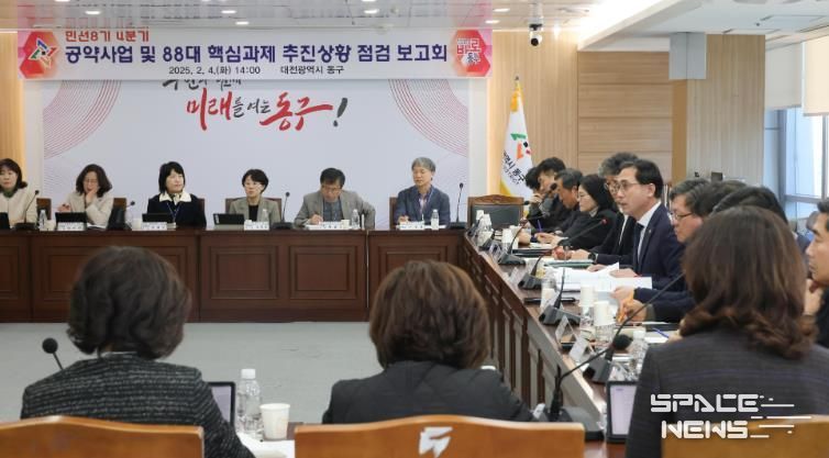 스페이스뉴스 스페이스뉴스 기자 | 대전 동구는 4일 구청 대회의실에서 올해 첫 ‘민선 8기 공약사업 및 88대 핵심과제 추진상황 보고회’를 개최했다.