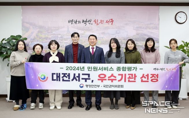 스페이스뉴스 스페이스뉴스 기자 | 대전 서구는 행정안전부와 국민권익위원회가 주관하는 ‘2024년 민원 서비스 종합평가’에서 우수 등급인 ‘나’등급을 획득했다고 밝혔다.