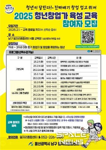 스페이스뉴스 스페이스뉴스 기자 | 남구 일자리종합센터는 11일 지역 예비·초기 청년창업자를 대상으로 ‘2025 청년창업가 육성 교육’을 참여자들의 열기 속에 개강했다.