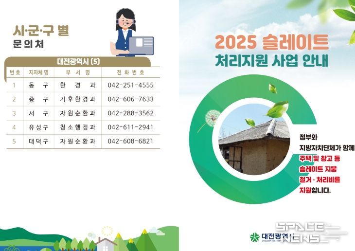 스페이스뉴스 스페이스뉴스 기자 | 대전 동구는 석면 및 비산먼지로부터 구민의 건강을 보호하고, 쾌적한 주거 환경을 조성하기 위해 ‘2025년 슬레이트 처리 지원사업’을 추진한다고 17일 밝혔다.