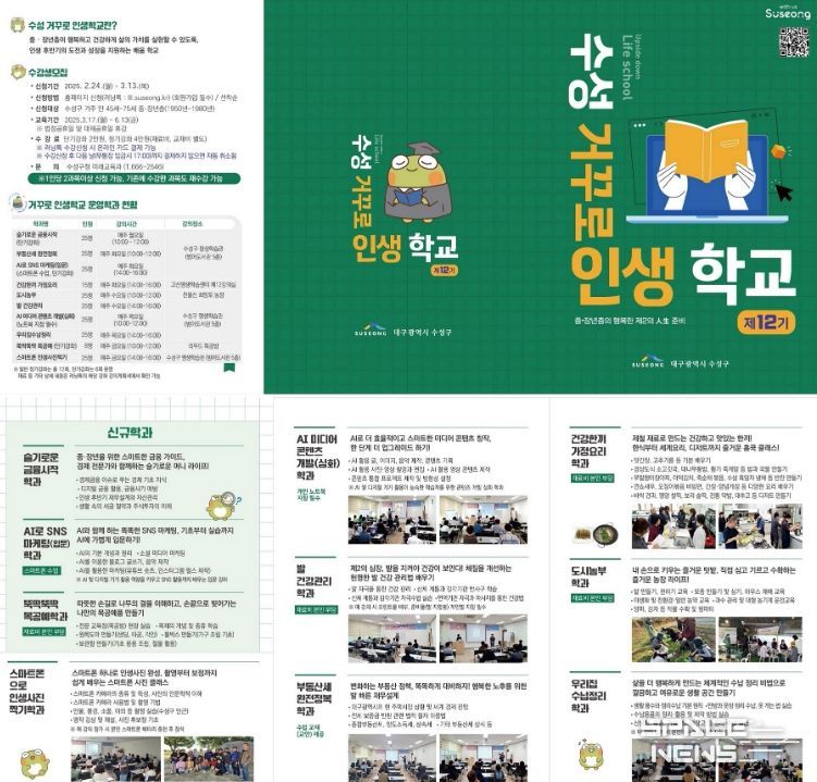 스페이스뉴스 스페이스뉴스 기자 | 대구 수성구는 2월 24일부터 다음 달 13일까지 중장년층의 인생 제2막 꿈과 도전을 지원하는 ‘제12기 수성 거꾸로 인생학교’ 수강생을 모집한다.