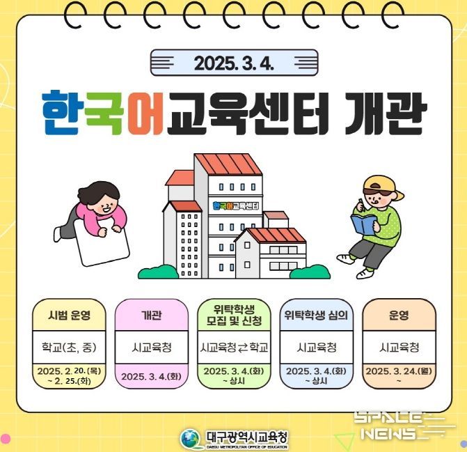 스페이스뉴스 스페이스뉴스 기자 | 대구시교육청은 오는 3월 4일 구(舊) 신당중 건물에서 개관을 앞두고 있는 한국어교육센터가 2월 20일부터 25일까지‘한국어교육캠프’를 시범 운영한다고 밝혔다.