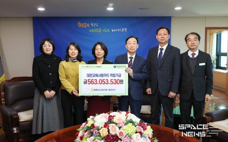 스페이스뉴스 스페이스뉴스 기자 | 대전시교육청은 지난해 각급학교와 산하기관 및 교직원이 대전교육사랑카드를 사용하여 모은 적립금 5억 6,300만원을 2월 21일 NH농협은행 대전본부(본부장 황진선)로부터 전달받았다.