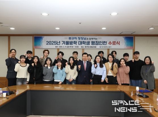 스페이스뉴스 스페이스뉴스 기자 | 대구 중구는 지난 21일 구청 상황실에서 2025년 겨울방학 대학생 행정 인턴 수료식을 개최했다.
