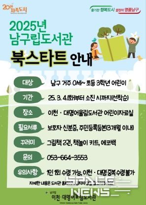 스페이스뉴스 스페이스뉴스 기자 | 대구 남구는 오는 3월부터 구립도서관에서 0세∼초등 3학년 어린이에게 그림책 꾸러미를 제공하는 ‘북스타트’를 운영한다고 밝혔다.