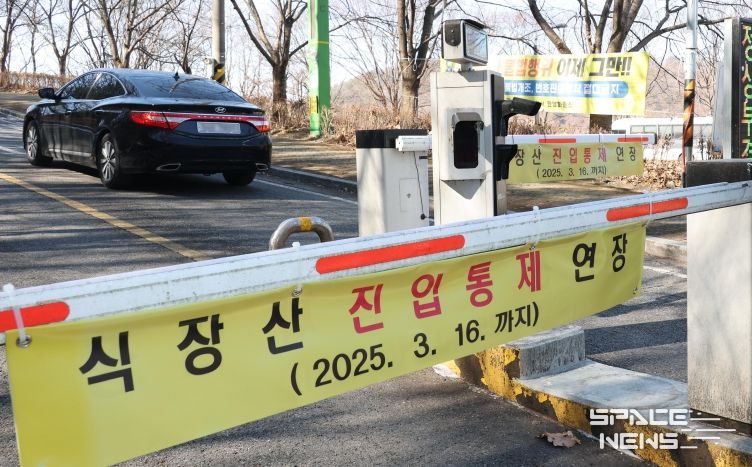 식장산 진입로는 겨울철 강설로 인한 결빙 구간이 많아, 방문객의 안전을 위해 매년 선제적으로 겨울철 차량 통행을 제한하고 있으며, 이번 차량 통제 조치는 지난해 12월 16일부터 시작됐다.