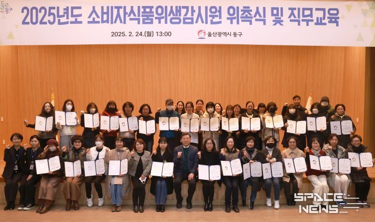 스페이스뉴스 스페이스뉴스 기자 | 울산 동구는 2월 24일 오후 1시 30분 동구청 5층 중강당에서 식품안전관리를 위해 소비자 식품위생 감시원 35명을 위촉하고 직무교육을 했다.