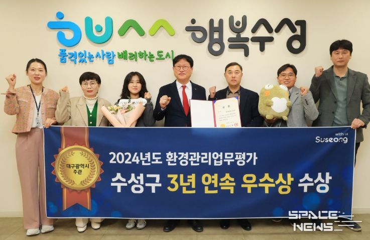 스페이스뉴스 스페이스뉴스 기자 | 대구 수성구는 지난 18일 대구시가 주관하는 ‘2024년도 환경관리업무 평가’에서 3년 연속 우수상을 수상했다.