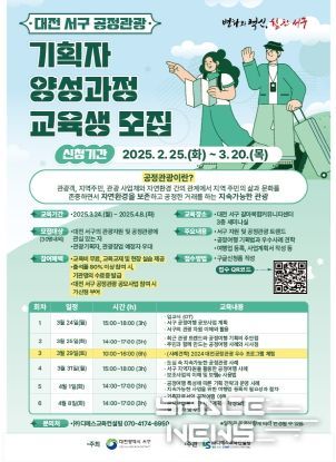 스페이스뉴스 스페이스뉴스 기자 | 대전 서구는 2월 25일부터 3월 20일까지 대전 서구 공정관광 기획자 양성 과정 교육생을 모집한다.