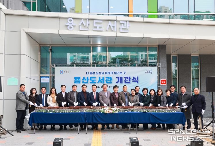 유성구는 25일 정용래 유성구청장, 김동수 유성구의회 의장, 지역 주민 등 200여 명이 참석한 가운데 용산도서관 개관식을 개최했다.