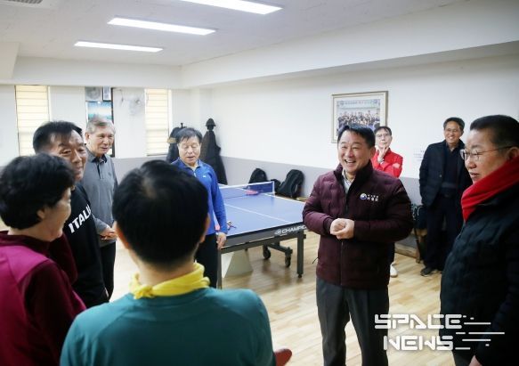 특히 누리아파트 탁구장에서 ‘공동주택 공동체 활성화 시설 지원사업’을 통한 마루바닥 교체 완료 현장을 확인하고, 탁구동호회 회원들과 탁구 경기 및 담화 시간을 가졌으며, 이어 하나로아파트 경로당에 방문하여 새해 인사와 점심 배식을 통해 어르신들의 건강과 안부를 살피고, 마지막 방문지인 동 행정복지센터에서 직원의 노고 격려와 꾸준한 행정신뢰도 향상을 당부했다.