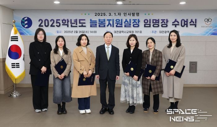 스페이스뉴스 스페이스뉴스 기자 | 대전시교육청은 2월 26일 시교육청 701호에서 2025년 3월 1일자 인사발령에 따른, ‘2025학년도 늘봄지원실장 임명장 수여식’을 개최했다.