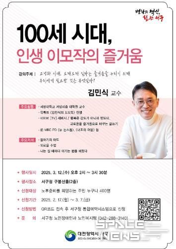 스페이스뉴스 스페이스뉴스 기자 | 대전 서구는 3월 12일 신중년을 대상으로 ‘100세 시대, 인생 이모작의 즐거움’을 주제로 노후 준비 지원 특강을 개최한다.
