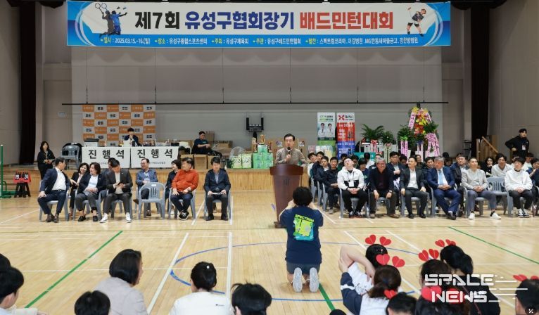 스페이스뉴스 스페이스뉴스 기자 | 대전시의회 조원휘 의장은 15일 유성구 종합스포츠센터에서 개최된 제7회 유성구 협회장기 배드민턴대회에 참석해 원활하고 안전한 대회 진행을 기원하며 생활체육 활성화를 위한 공공체육시설의 확충을 약속했다.