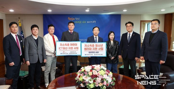 스페이스뉴스 스페이스뉴스 기자 | 대전시교육청은 3월 13일 관내 취약계층 초·중학생을 위하여 한반도라이온스클럽으로부터 1천만원 상당의 여성위생용품과 SK텔레콤으로부터 휴대폰 단말기 및 12개월간 요금 지원을 기탁받았다고 밝혔다.