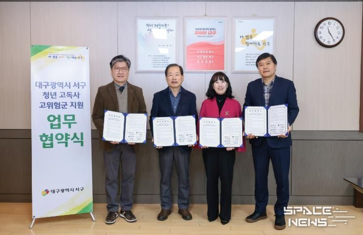 스페이스뉴스 스페이스뉴스 기자 | 대구광역시 서구는 지난 13일, 청년 고독사 고위험군 지원을 위해 서구종합사회복지관, 서구제일종합사회복지관, 대구서구가족센터, 서구정신건강복지센터와 업무협약(MOU)을 체결했다고 밝혔다.
