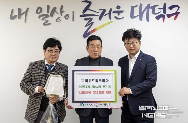 스페이스뉴스 스페이스뉴스 기자 | 대전 대덕구는 17일 ㈜파인트리코리아로부터 장애인복지시설 지원을 위한 스탠드 조명 등 1000만원 상당의 물품을 기탁받았다고 밝혔다.