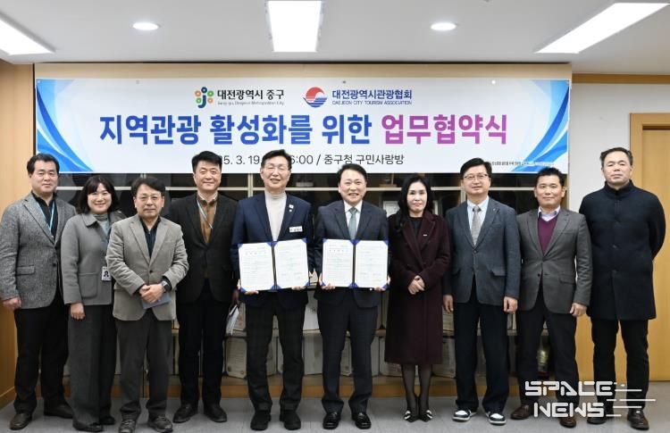 스페이스뉴스 스페이스뉴스 기자 | 대전 중구는 지난 19일 구청 구민사랑방에서 (사)대전광역시관광협회와 지역관광 활성화를 위한 업무협약(MOU)을 체결했다고 밝혔다.