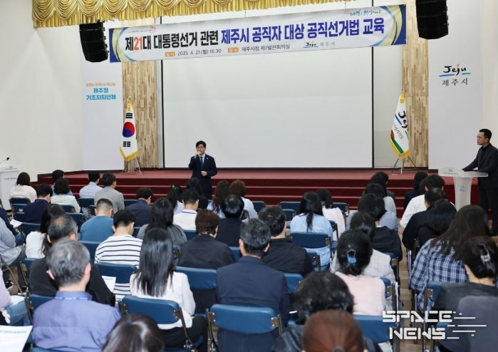 스페이스뉴스 스페이스뉴스 기자 | 제주시는 21일 시청 1별관 회의실에서 공직자 150여 명을 대상으로 제21대 대통령 선거 관련 ‘공직선거법’ 특별 교육을 실시했다.