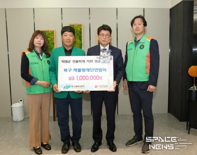 스페이스뉴스 스페이스뉴스 기자 | 대구 북구 자율방재단연합회에서는 4월 22일 의성군 산불피해 복구를 위한 성금 100만원을 대구 북구청에 기탁했다.