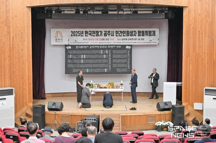 스페이스뉴스 스페이스뉴스 기자 | 공주시의회 임달희 의장이 5일 오전 공주대학교 산학연구관에서 열린 2025년 한국전쟁기 공주시 민간인희생자 합동위령제에 참석하여 전쟁으로 희생된 민간인들의 넋을 기리며 애도의 뜻을 전했다.