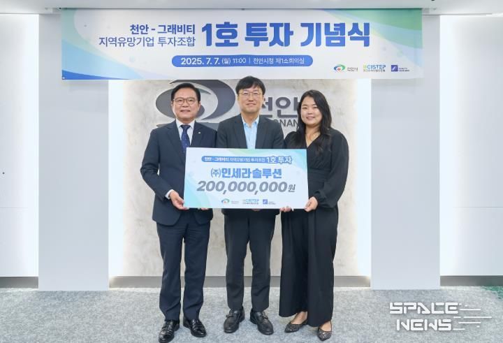 스페이스뉴스 스페이스뉴스 기자 | 천안시는 7일 소상공인 육성을 위한 금융지원 프로그램 ‘천안-그래비티 지역유망기업 투자 조합’의 1호 투자 기업으로 ‘‘인세라솔루션’을 선정했다.