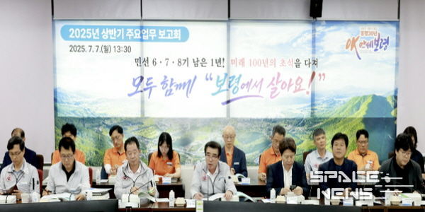 스페이스뉴스 스페이스뉴스 기자 | 보령시가 지난 7일 시청 중회의실에서 ‘2025년 상반기 주요업무보고회’를 개최했다고 밝혔다. 이번 보고회는 부서별 상반기 성과를 공유하고, 새 정부 정책기조에 부합하는 하반기 중점 추진계획을 점검하는 자리였다.