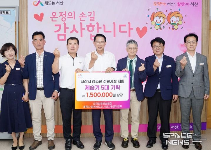 스페이스뉴스 스페이스뉴스 기자 | 충남 서산시는 11일 시청 시장실에서 대한전문건설협회 서산시운영위원회 청소년 수련시설 물품 기탁식을 개최했다고 밝혔다.