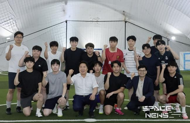 스페이스뉴스 스페이스뉴스 기자 | 오세현 아산시장이 15일 배방 스마트에어돔 풋살장에서 시청 직장동호회인 풋살 동호회 ‘세모발’ 활동 현장을 방문해 회원들을 격려하고 소통하는 시간을 가졌다.