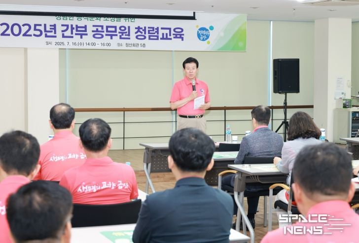 스페이스뉴스 스페이스뉴스 기자 | 금산군은 지난 16일 금산읍 청산회관에서 상호 존중을 실천하는 청렴한 조직문화 조성을 위해 간부 공무원 44명을 대상으로 청렴교육을 시행했다.