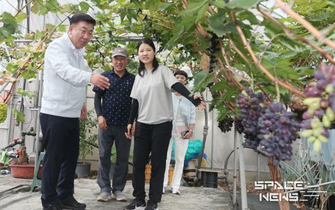 방문 농가는 최슬기(36) 씨의 포도 재배시설과 오정환(37) 씨의 느타리버섯 재배시설로, 이 시장은 이들을 만나 최근 스마트 농업 기술을 접목한 시설 하우스와 유통·가공 연계 창업 사례 등을 꼼꼼히 살펴보며 청년 농업인의 창의적이고 도전적인 농업경영 방식에 깊은 관심을 보였다.