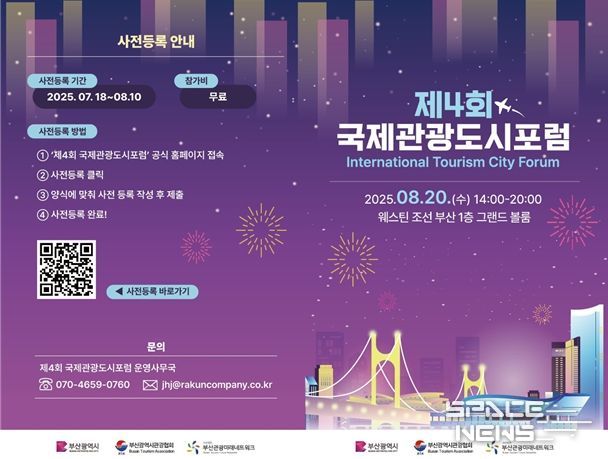 스페이스뉴스 스페이스뉴스 기자 | 부산시는 20일 오후 2시 웨스틴 조선 부산(1층 그랜드 볼룸)에서 '제4회 국제관광도시 포럼'을 개최한다고 밝혔다.