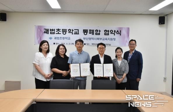 스페이스뉴스 스페이스뉴스 기자 | 부산광역시북부교육지원청은 지난 21일 오후 괘법초등 학교 교장・학교운영위원장・학부모회장, 시교육청・교육지원청 관계자등이 참석한 가운에‘통폐합을 위한 협약’을 체결했다고 22일 밝혔다.