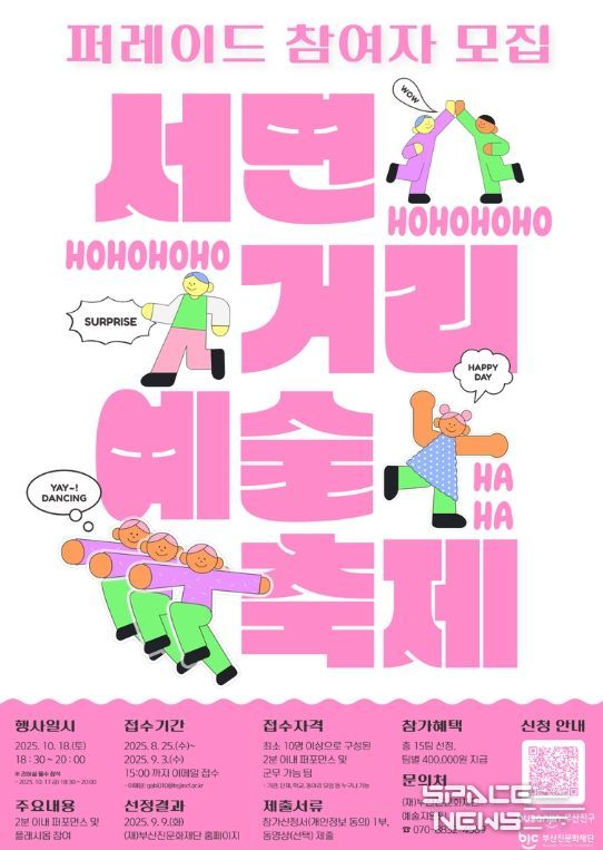 스페이스뉴스 스페이스뉴스 기자 | (재)부산진문화재단은 오는 10월 17일 부터 18일에 열리는 2025 지역문화 특화사업 '서면거리예술축제' 주제공연의 퍼레이드 퍼포먼스 참가팀을 모집한다고 밝혔다.