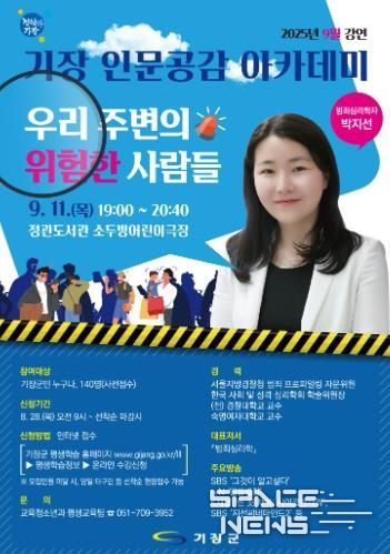 스페이스뉴스 스페이스뉴스 기자 | 기장군은 오는 9월 11일 오후 7시 정관도서관 소두방어린이극장에서‘기장 인문공감 아카데미’강연을 개최한다고 26일 밝혔다.
