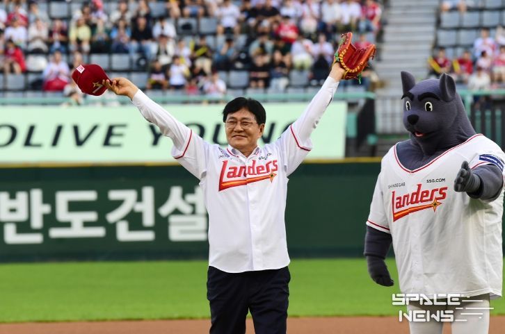 스페이스뉴스 스페이스뉴스 기자 | 박용철 강화군수는 지난 26일 인천 문학야구장에서 열린 SSG 랜더스의 홈경기에서 시구자로 나섰다.