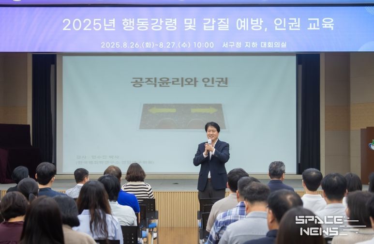 스페이스뉴스 스페이스뉴스 기자 | 인천 서구는 지난 26일부터 이틀간 구청장을 비롯한 전 부서 공직자 500여 명을 대상으로 ‘행동강령 및 갑질 예방, 인권 교육’을 실시했다고 27일 밝혔다.