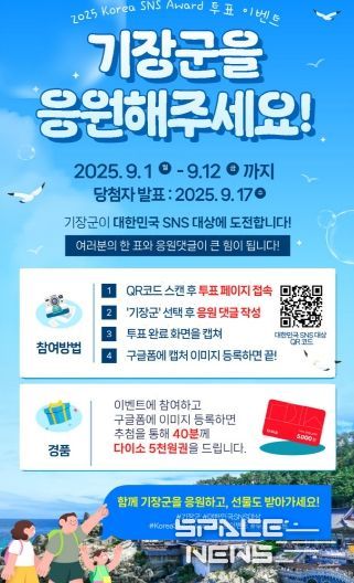 스페이스뉴스 스페이스뉴스 기자 | 기장군은 ‘제15회 대한민국 SNS 대상’에 도전하면서, 오는 9월 1일부터 군민의 관심과 참여를 유도하는 ‘투표 인증 SNS 이벤트’를 진행한다고 26일 밝혔다.