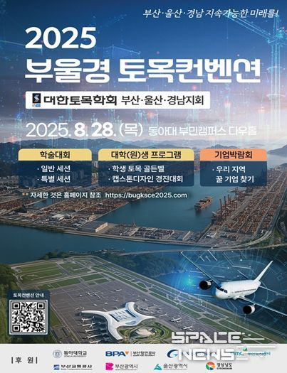 스페이스뉴스 스페이스뉴스 기자 | 부산시는 부울경 지역 지·산·학·연·관의 건설 전문가와 대학생이 참여하는 '2025 부울경 토목컨벤션'이 오늘(28일) 오전 9시 동아대학교 부민캠퍼스에서 열린다고 밝혔다.