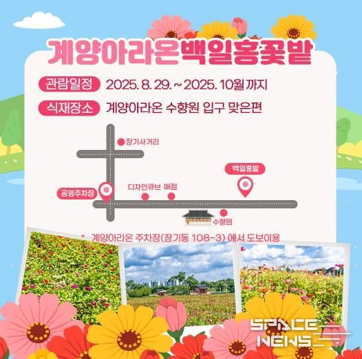 스페이스뉴스 스페이스뉴스 기자 | 인천광역시 계양구는 계양아라온에 가을의 정취를 더할 24,979㎡(약 7,550평) 규모의 백일홍 꽃밭을 조성해 8월 29일부터 시민들을 맞이한다고 밝혔다.