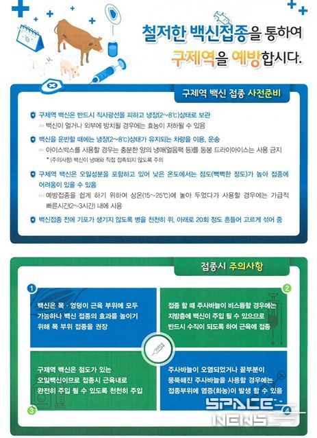또한 접종 후 4주 이내에 백신 항체 혈청 예찰을 실시해, 항체양성률이 기준에 미달하는 농가에 대해서는 과태료를 부과하고 재접종 명령 및 재검사를 통해 접종 누락이 발생하지 않도록 관리할 방침이다.